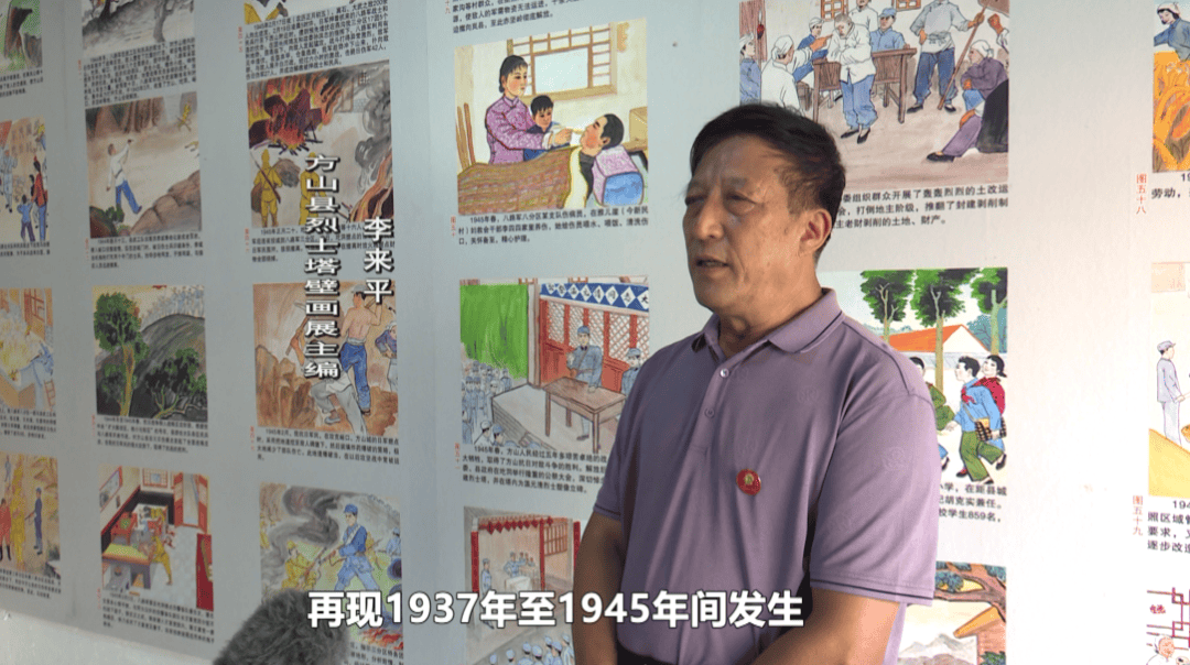 这个方山抗战故事的壁画是通过图文结合的形式,再现1937年至1945年间发生(在)方山县境内的抗战故事,展现了方山儿女在烽火岁月中的牺牲与贡献。希望这些壁画能像教科书一样,激励全县人民铭记这段历史,传承和弘扬伟大抗战精神,让伟大抗战故事在传承中焕发新的时代光芒,让红色基因代代相传。