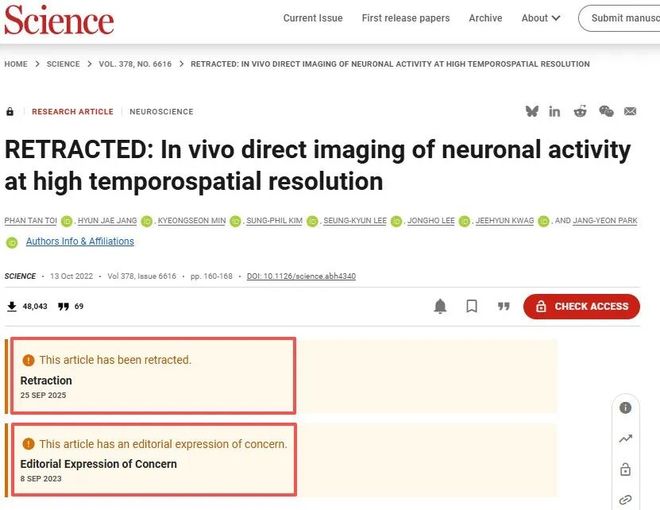 在多方压力下,朴章延团队应《Science》要求开展补充验证,最终不得不承认核心结论存在根本性缺陷:此前被解读为脑神经活动的信号,实为 MRI 设备产生的 噪音。2025年,这支团队主动撤回了这篇曾轰动学界的论文。对于撤稿,朴章延在书面回应中表示已将新发现及复现结果发布于 bioRxiv,计划补充内容后向其他期刊重新投稿,但这一表态未能平息学界的质疑。