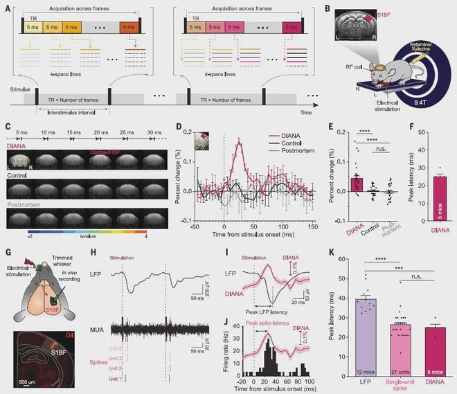 韩国成均馆大学生物医学工程与智能精准医疗融合系朴昌源副教授团队开发的 DIANA 技术宣称无需电极,仅通过常规功能磁共振成像(fMRI)设备,就能以毫秒级时间分辨率和细胞层空间分辨率捕捉神经信号。在小鼠实验中,该技术观测到神经信号以 0.005 秒间隔传递至体感皮层,速度达到现有技术的8倍,被学界寄予推动阿尔茨海默病、帕金森病等脑疾病研究的厚望。