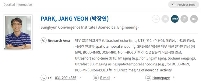 朴昌源(Jang-Yeon Park),现任韩国成均馆大学生物医学工程系副教授、磁共振先进成像研究实验室主任。1995年、1998年先后在韩国首尔大学获得学士、硕士学位;2006年获得美国明尼苏达大学医学物理学博士。