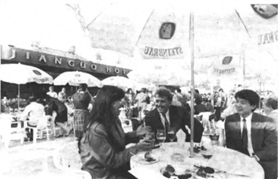 图上世纪90年代初期, 建国饭店办起花园式酒吧(露天餐厅),每晚营业到23点,受到中外宾客的欢迎。