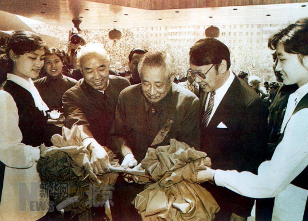 图1982年4月28日建国饭店开业剪彩仪式(右三)与美陈宣远(右二)一同为建国饭店开业剪彩